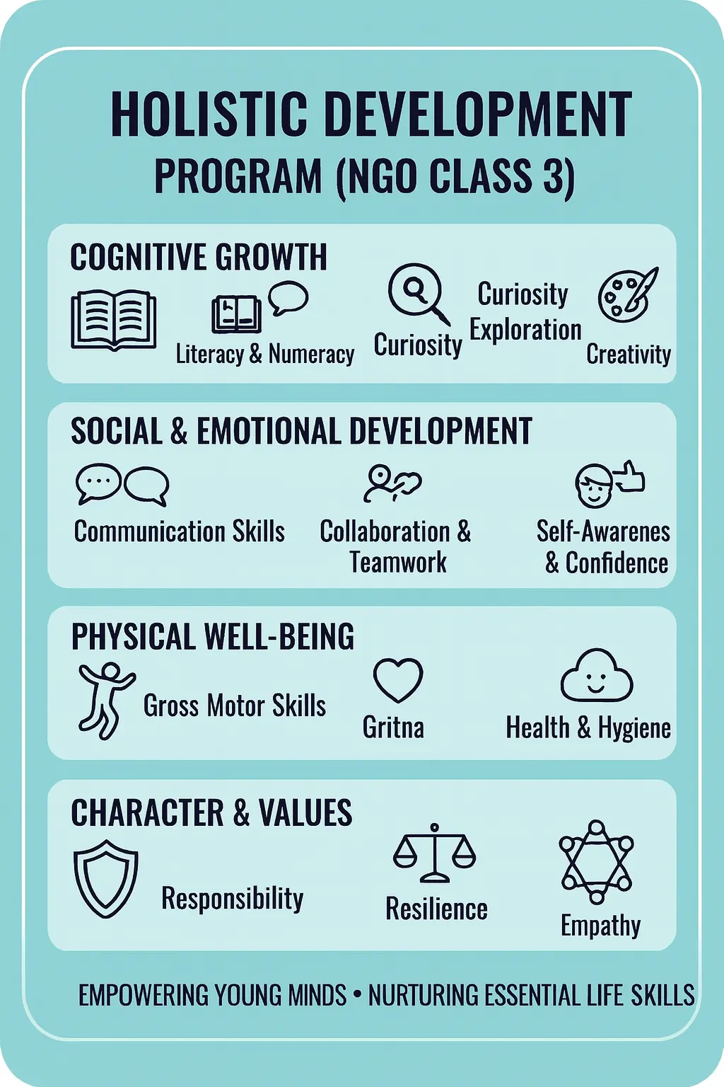Our specialized Personality Development Program for underprivileged children is meticulously designed to fill this critical gap. We move beyond rote learning, focusing on holistic growth through interactive workshops and fun-filled activities. We are not just teaching skills; we are cultivating leaders, communicators, and compassionate citizens who are ready to face the world with dignity and courage.